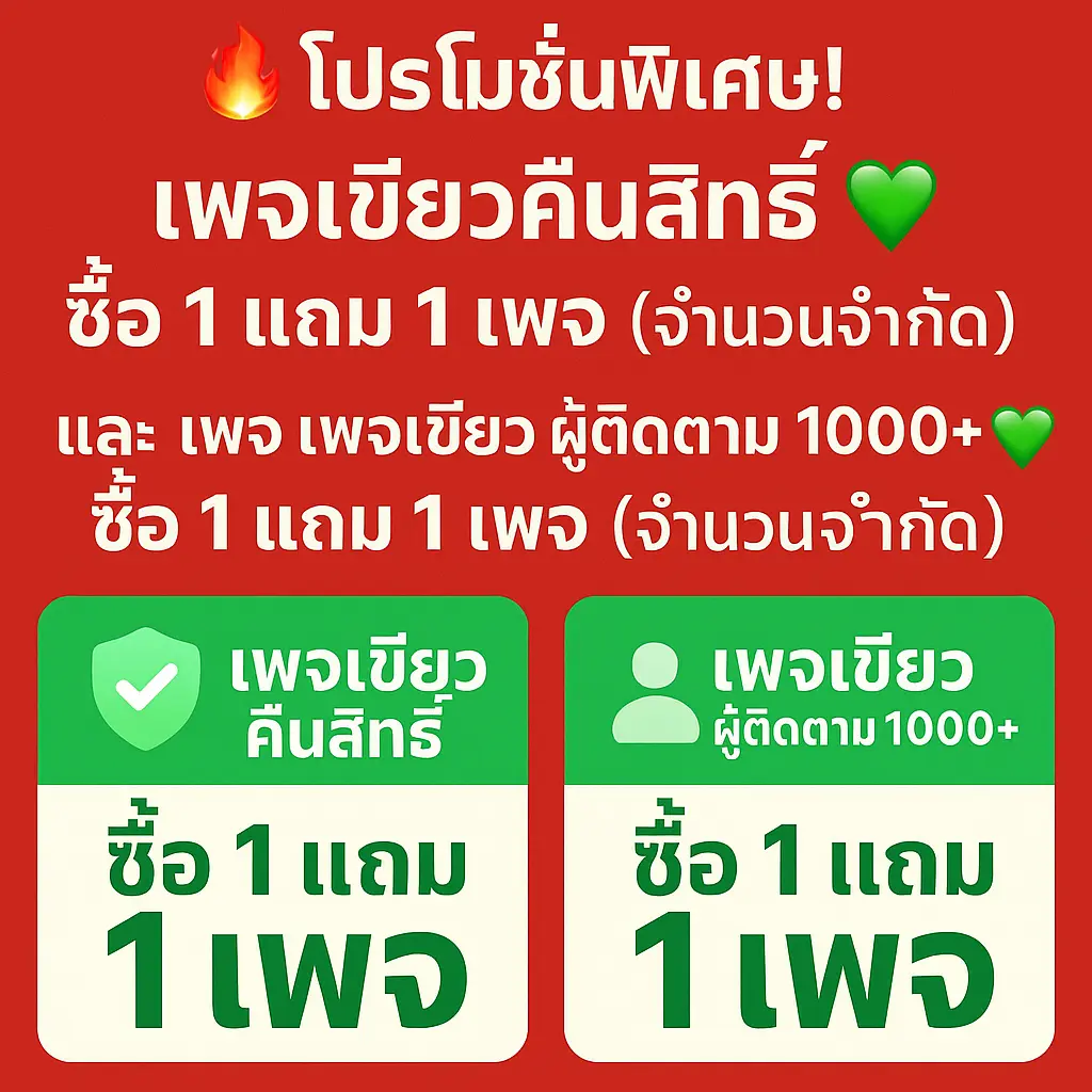 🔥 โปรโมชั่นพิเศษ! ซื้อ 1 แถม 1 เพจเขียว 💚 จำนวนจำกัด