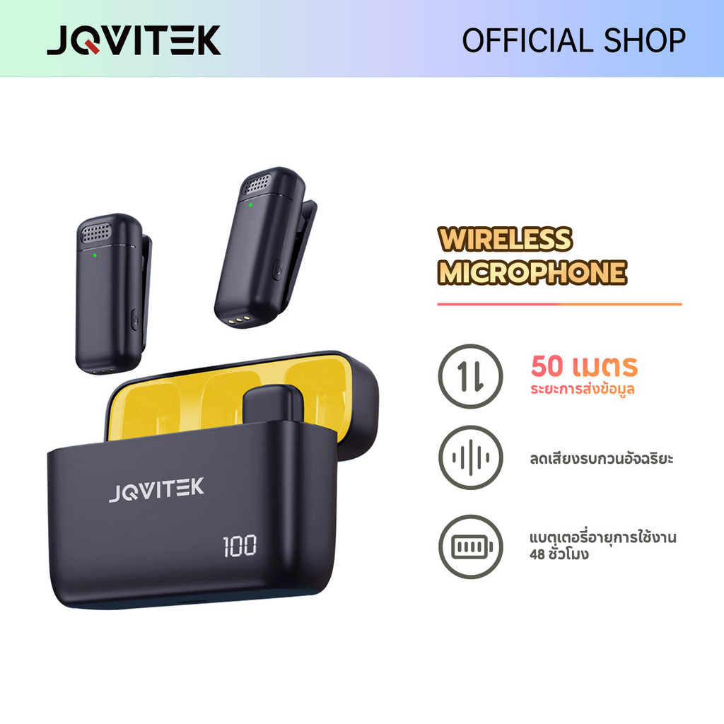 ไมโครโฟนไร้สาย JQVITEK LM03 มาพร้อมเทคโนโลยี Plug and Play ใช้งานง่ายเพียงเสียบตัวรับสัญญาณก็พร้อมใช้งานทันที ไม่ต้องติดตั้งโปรแกรมใดๆ ให้เสียงคมชัด ใส ไร้เสียงรบกวน ดีไซน์สวยงาม พกพาสะดวก น้ำหนักเบา ใช้งานต่อเนื่องได้ยาวนานถึง 6 ชั่วโมง เหมาะสำหรับหลากหลายกิจกรรม เช่น งานสัมมนา, การนำเสนอ, Vlog, Live สด, ร้องคาราโอเกะ และอื่นๆ มีให้เลือกทั้งแบบไมโครโฟนเดี่ยวและคู่ ตอบโจทย์ทุกความต้องการของคุณ ราคาสุดคุ้มค่าเพียง 249 บาท